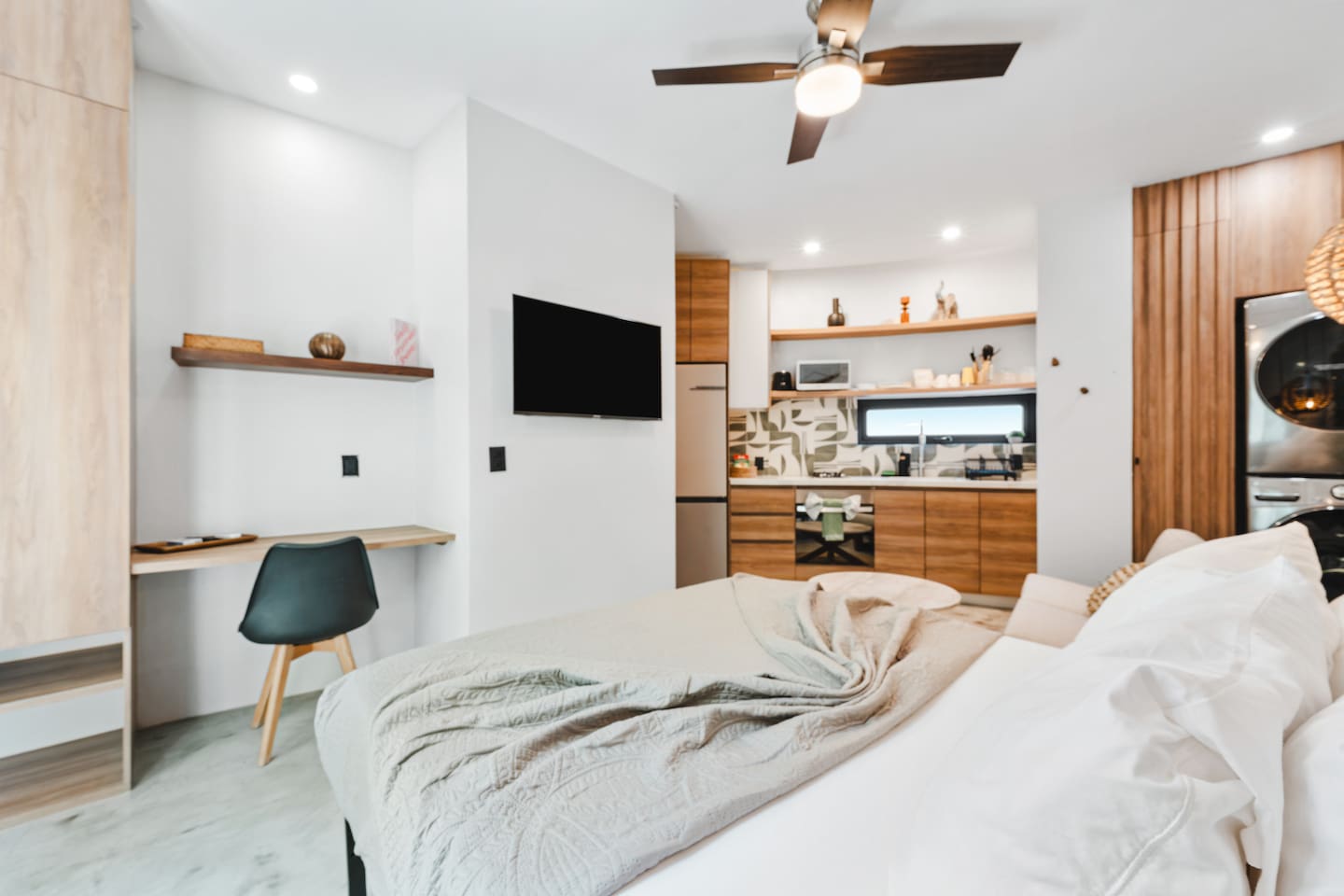 ✔ Luxuriously designed 1-bedroom, 1-bathroom condo ✔ Stunning rooftop infinity pool with panoramic views ✔ Lightning-fast Fiber Wi-Fi at 300 Mbps ✔ Fully equipped modern kitchen for culinary adventures ✔ Rooftop BBQ and yoga space for relaxation and wellness ✔ Sleep like royalty on luxury mattresses and Egyptian cotton sheets ✔ Purified water system ensuring safe hydration ✔ Soundproofed walls for uninterrupted tranquility ✔ Dedicated parking spaces for car and golf cart ✔ Contemporary bathroom with premium toiletries Neighborhood Description 📍 Just a short walk to Sayulita's lively town center 📍 Enjoy a mix of quaint shops and tantalizing restaurants 📍 Explore vibrant art galleries showcasing local talent 📍 Famous for its laid-back, bohemian atmosphere 📍 Catch waves with local surfers at nearby beaches 📍 Indulge in authentic regional dishes and local cuisine 📍 Discover artistic treasures and boutique shopping 📍 Join a local yoga class for relaxation and mindfulness 📍 Experience the vibrant nightlife with live music 📍 Hike nearby trails for stunning natural scenery Don't miss your chance to experience Sayulita's charm from the comfort of this luxurious condo. Book now and start your adventure today!